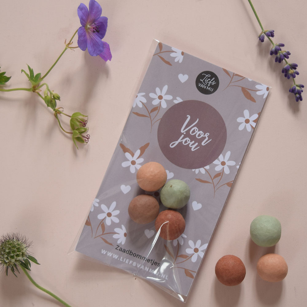 • Bloemenzaad bommetjes ‘Voor jou’