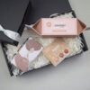 • Geschenkverpakking met twee theelichtjes en roze lucifers in flesje