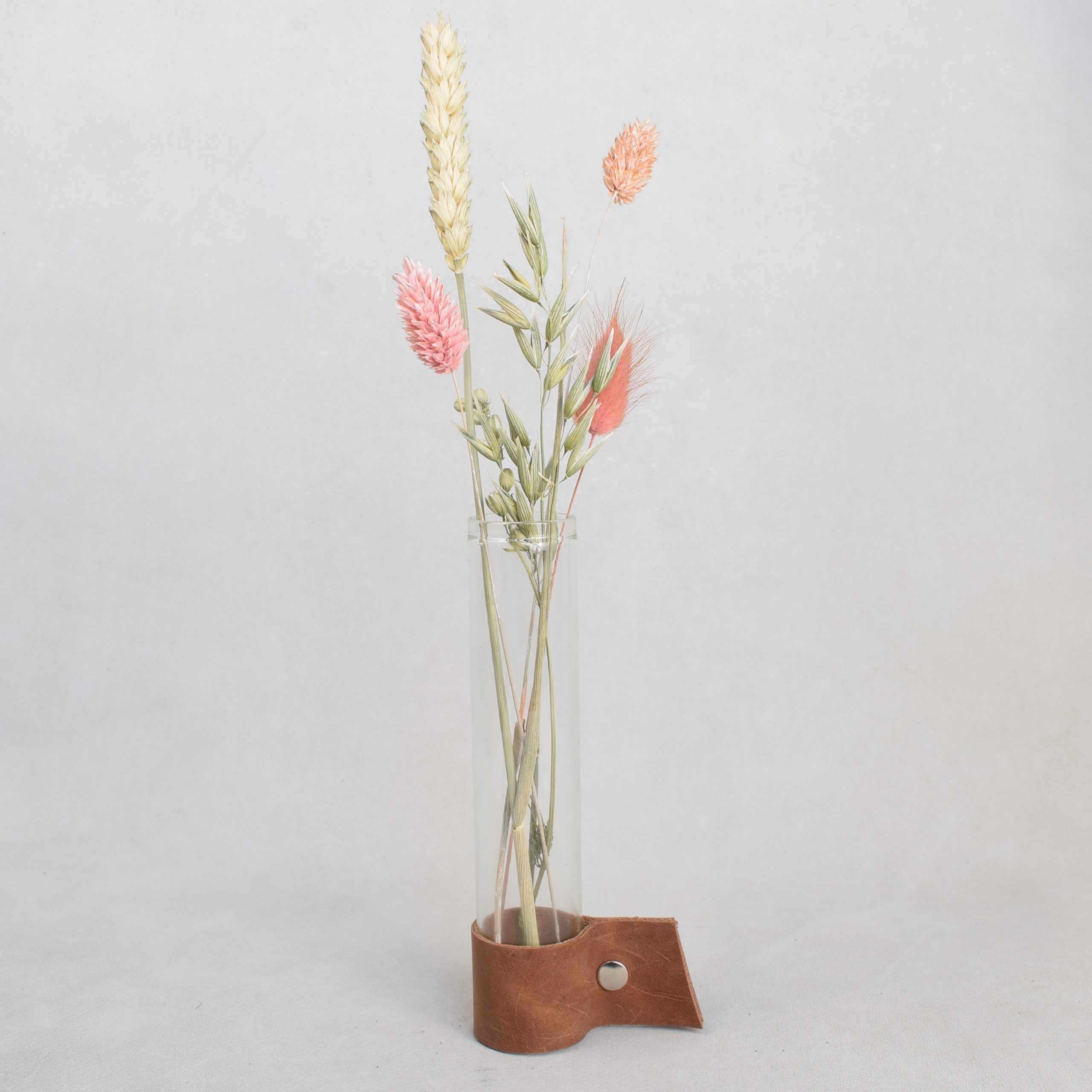 • Droogbloemen in reageerbuisje met leertje
