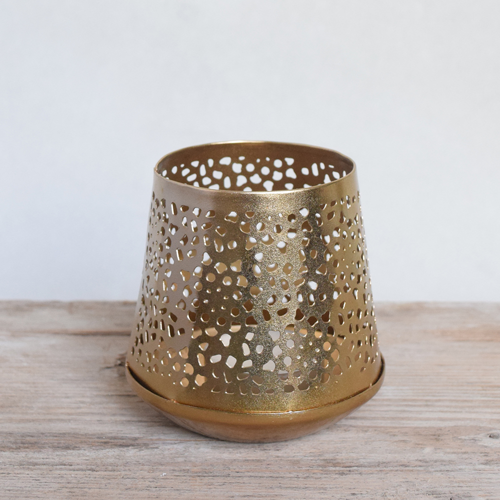 Hoe leuk is deze gouden metalen waxinelichthouder. Een echte sfeermaker in je interieur!