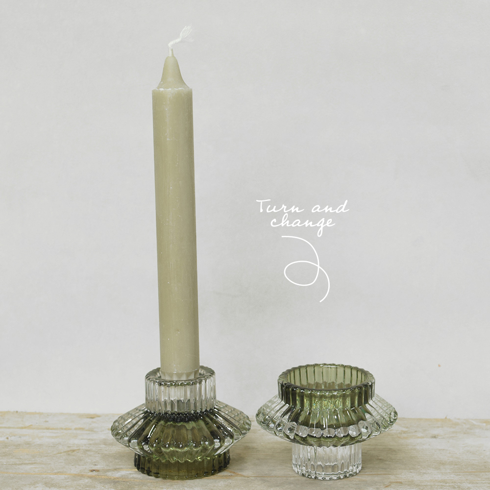 Deze houder hoort bij onze serie Turn & change kaarsenhouders. Aan de ene kant kun je een mooie dinerkaars plaatsen en als je de houder omdraait kun je er een waxinelichtje in plaatsen.