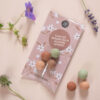 Vier kleurrijke zaadbommetjes van Blossombs in een mooie geschenkverpakking met de tekst “Lieve meester, bedankt dat je mij hielp groeien!”.